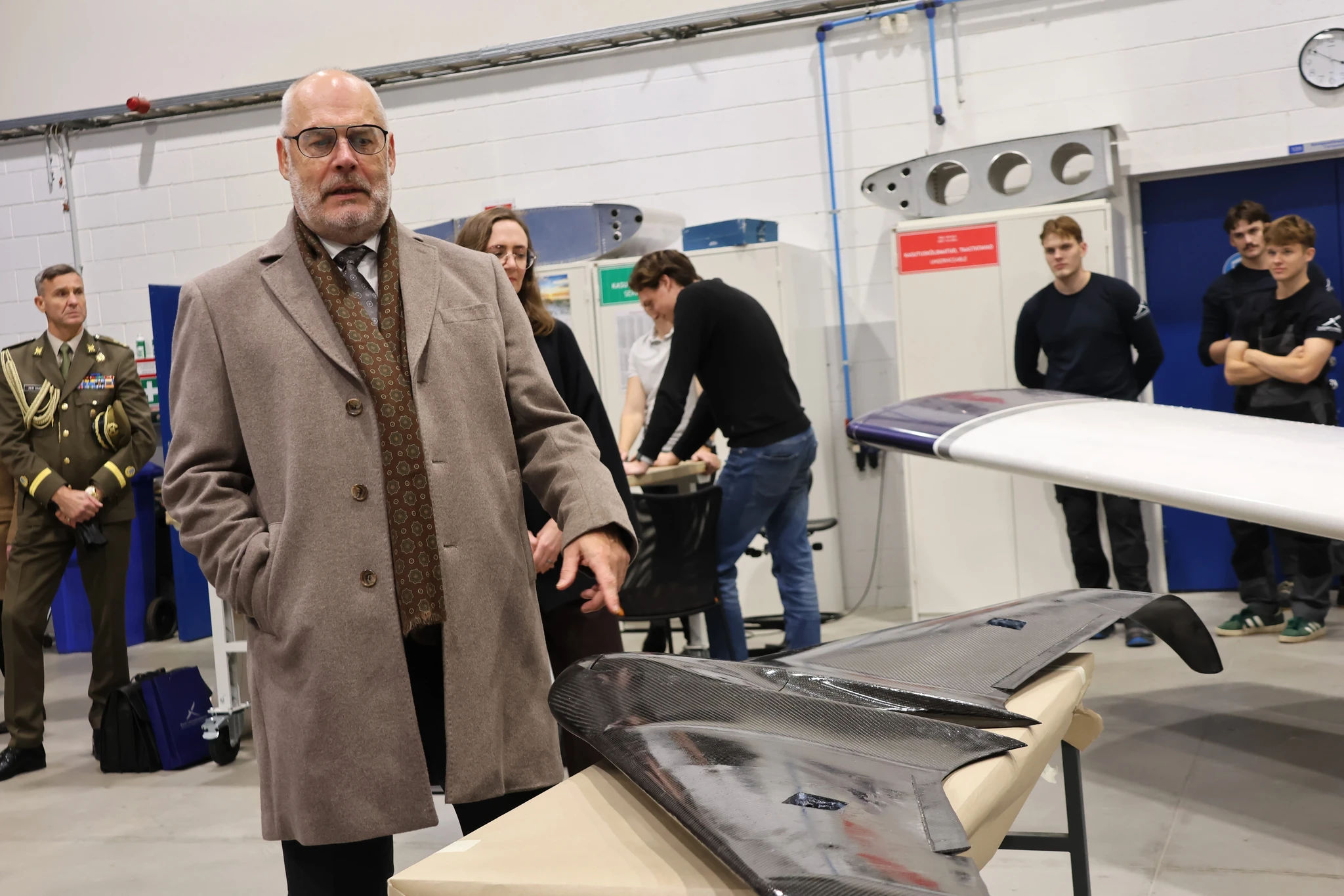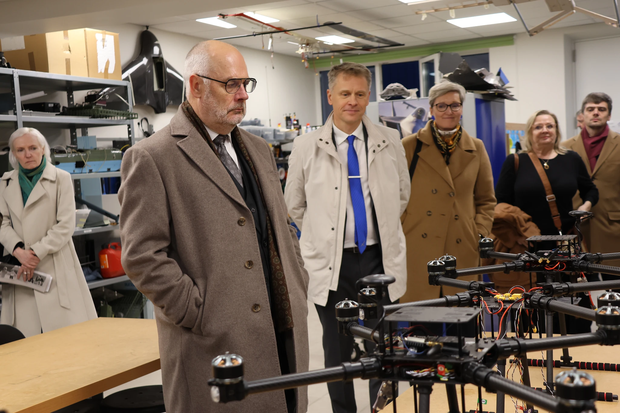 Pärast sisukat arutelu tutvus president akadeemia õppehoone ning tegevusvaldkondadega. Lähemalt tehti tutvust lennuki- ja kopterisimulaatoritega, lennujuhtimistorni simulaatoriga, droonilabori ning õhusõiduki hoolduse õppeangaariga. Lennuakadeemia töötajad ja tudengid selgitasid, kuidas simulaatorites õppetöö välja näeb ning millega droonilaboris ja angaaris tegeletakse. Meie suureks rõõmuks tundis president meie tegevuste vastu tõelist huvi ning esitas hulga küsimusi.